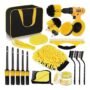Detailing Brush * 5 Drill Cleaning Brush * 4 Wire Brush * 3 Waxing Pad * 2 Air Vent Cleaning Brush * 1 Car Wash Mitt * 1 Car Wash Towel * 1 Car Wash Gel * 1 Window Squeegee * 1 Carry Bag * 1