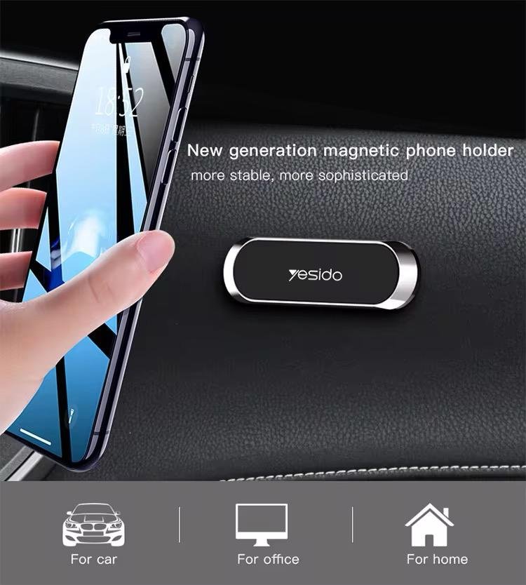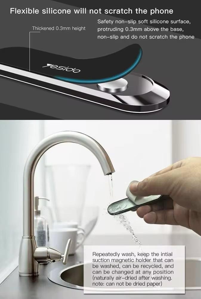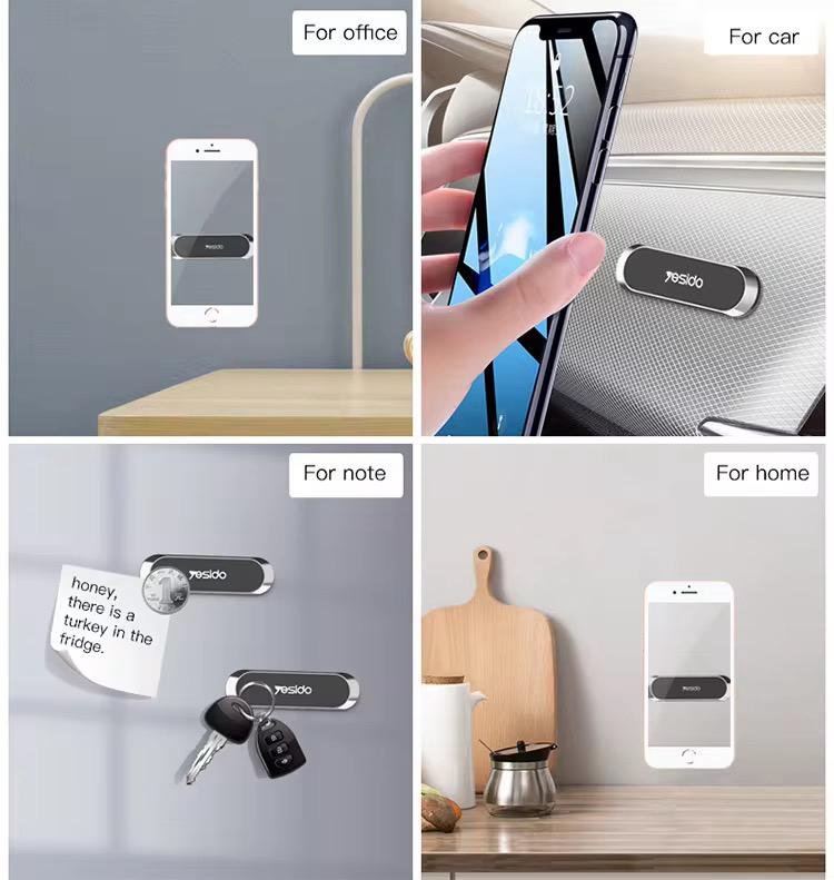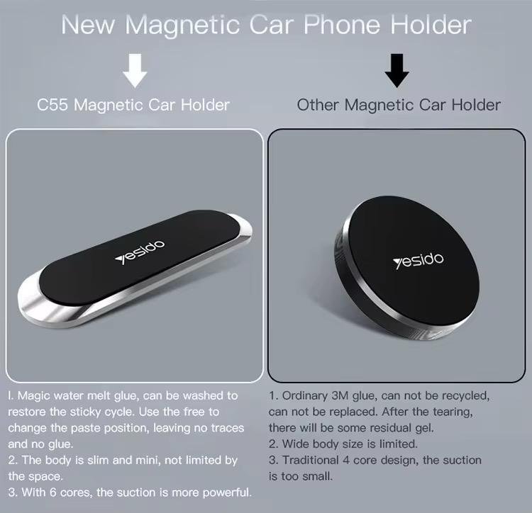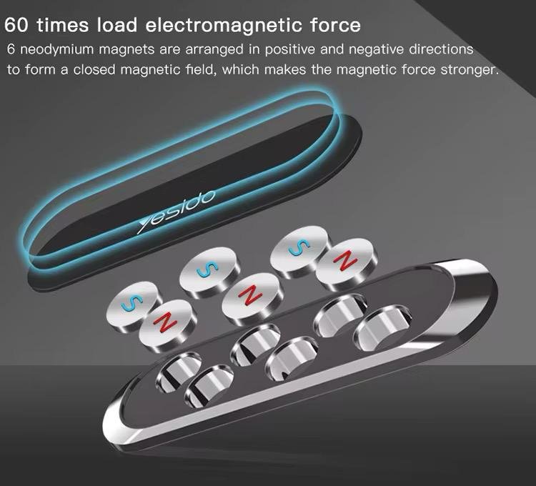 This product features a mini design with wide applications, universal compatibility, stable phone holding, zinc alloy high gloss plating, strong 3M glue, and magnetic functionality with 6 neodymium magnets.